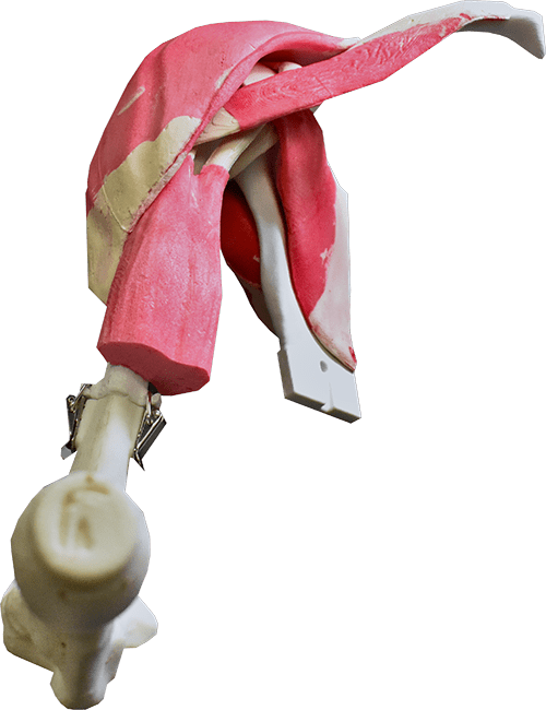Musculature includes the biceps, deltoid, pectoralis major, and the rotator cuff, allowing for lifelike dissection and repair scenarios. The model also incorporates the cephalic vein and radiolucent soft tissue with skin, ensuring a comprehensive and realistic surgical experience, while maintaining the ability to use imaging techniques for enhanced training outcomes.
