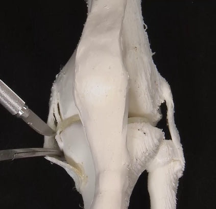 This model can walk trainees through the entire total knee arthroplasty procedure: exposure, bony resection, soft tissue balancing, instrumentation, and closing.