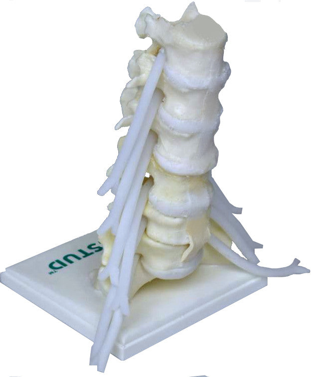 Our new desktop model was designed for showcasing an array of disc implants with varying degrees of correction. This model features our classic 3D printed bone and flexible ligaments and can be made with degeneration or with different spacing between vertebral endplates. The model is set with a rigid stand, making it perfect for in-office demonstrations and patient consultation!