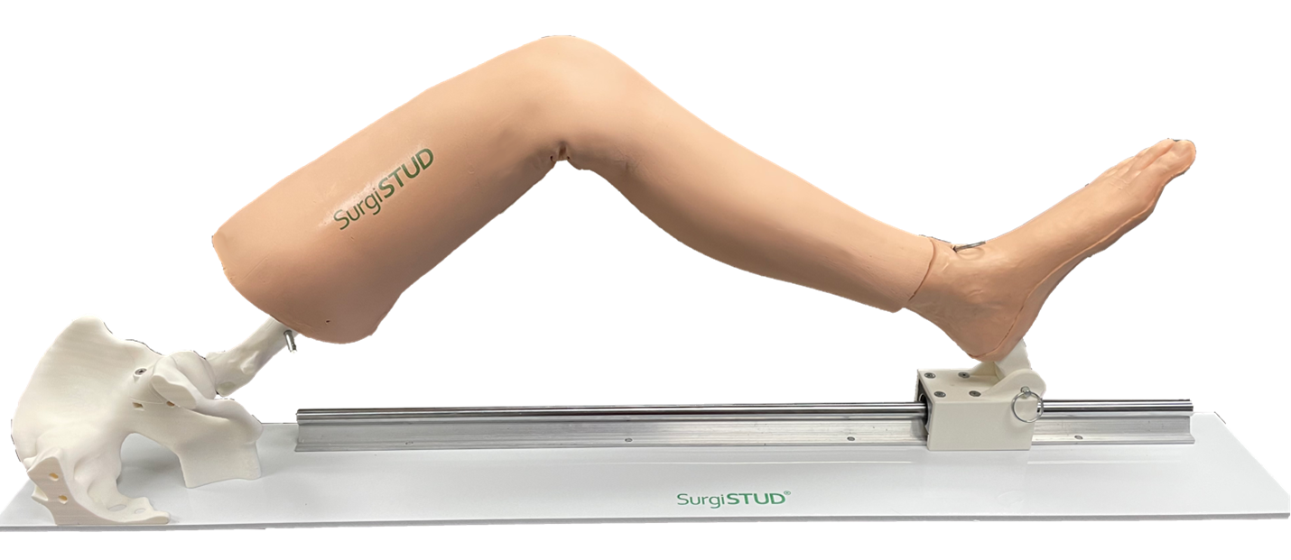 This model includes all ligaments, patella/Quads tendon w/ITB, posterior capsule and retinaculum, popliteus, quad muscles/vastus all cast within a skin and soft tissue envelope to create a realistic surgical environment.